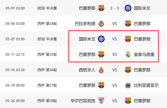 根据赛程安排,本周末巴萨将对阵巴拉多利德,之后就要出征意大利,准备欧冠第二回合的决战。打完欧冠,巴萨就将马不停蹄赶回西班牙,备战和皇马的德比大战。与国米和皇马2场比赛,就隔了差不多4天的时间,对于已经非常疲劳的巴萨来讲,这样的赛程安排,无疑让他们苦不堪言,甚至随时可能崩盘。